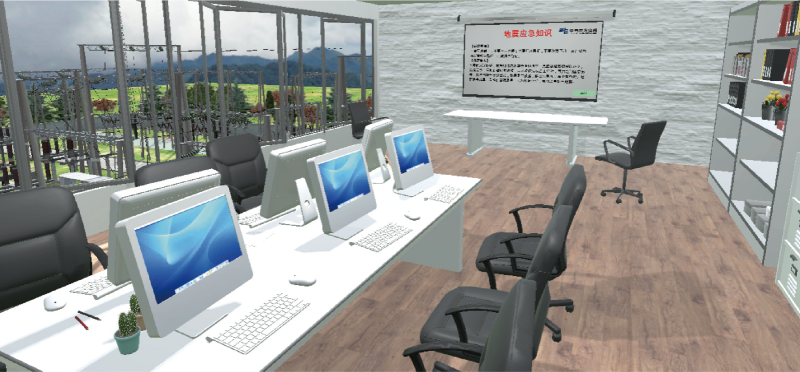 本项目在虚拟场景中搭建地震VR 体验场景,针对日常生活中不容易触及到的自然灾害场景,进行现场虚拟化 再现,让体验者在感官上达到真实效果,从而达到实训的目的。