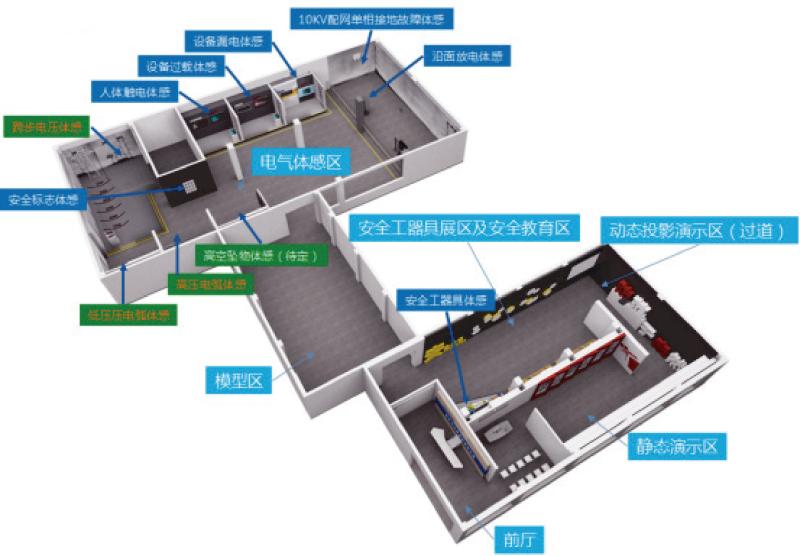电力安全VR虚拟展厅提供完全沉浸的体验,使用户有一种置身于虚拟境界之中的感觉。它利用头盔式显示器,把 参与者的视觉、听觉和其它感觉封闭起来,并提供一个新的、虚拟的感觉空间,VR 场景更加真实完整,体验感更 强,电力安全教育效果更明显。软件根据实际体验项目需求进行真实场景虚拟再现,在当前项目中的某个位置进 行安全模拟,让人员直接在虚拟的项目中进行安全体验,体验效果更直观。